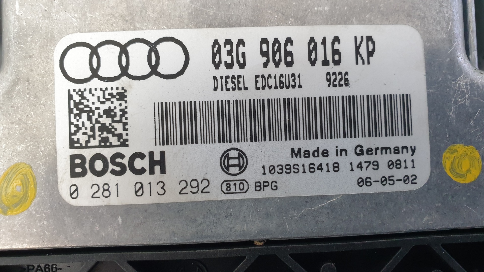 512539 Audi A4 2006, Motorvezérlő, 03G906016KP, 0281013292, Bosch.